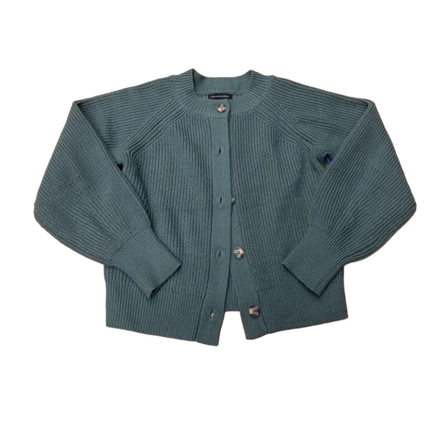 Stay cozy and stylish in this green Banana Republic sweater cardigan. Size M, this piece exudes comfort and versatility.